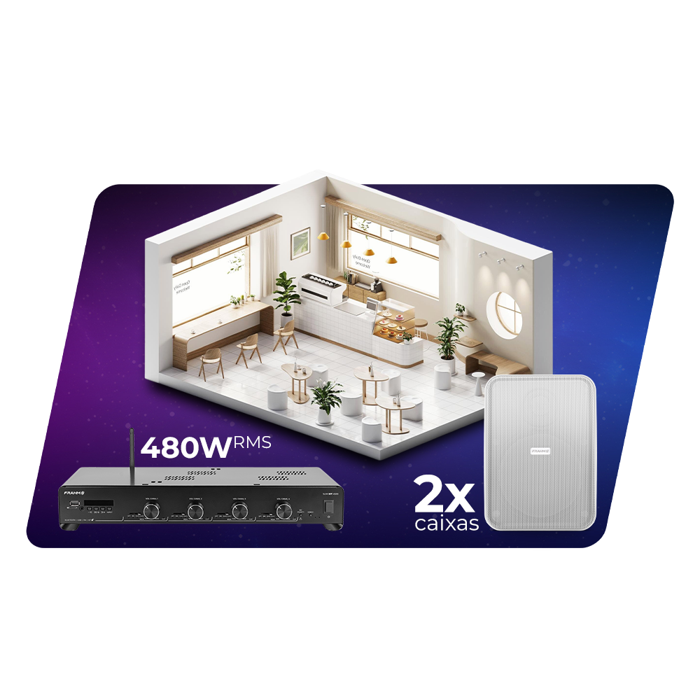 Potência ideal para sonorização de ambientes como restaurantes, conveniências, farmácias, lojas, clínicas, ambientes corporativos, mercados/supermercados e muito mais. Podendo ser instaladas até 2 caixas de 8 Ohms em paralelo por canal.