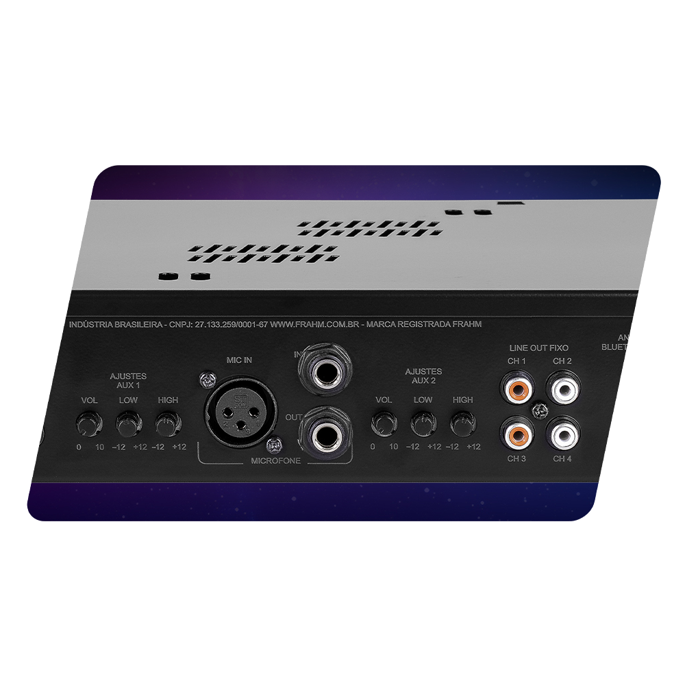Maior controle de volume e equalização, o que possibilita personalizar o som para cada ambiente, através dos equalizadores de  Graves (100Hz)  e Agudos (10kHz).